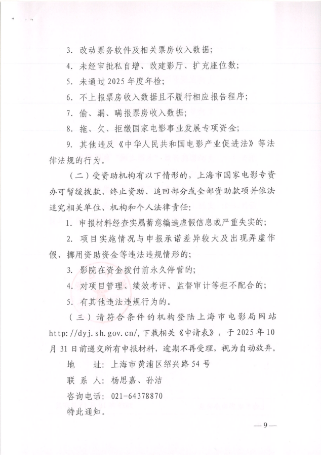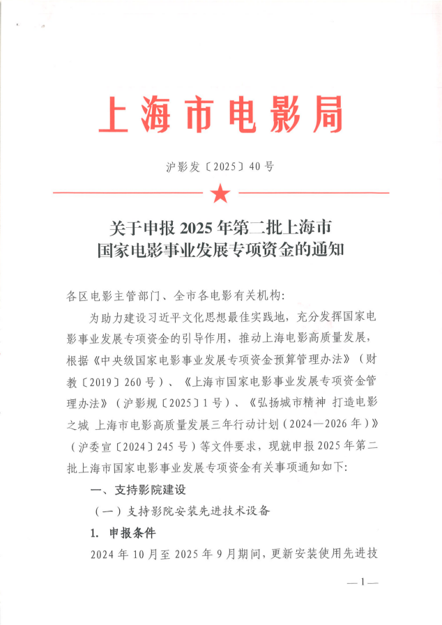 关于申报2025年第二批上海市国家电影事业发展专项资金的通知