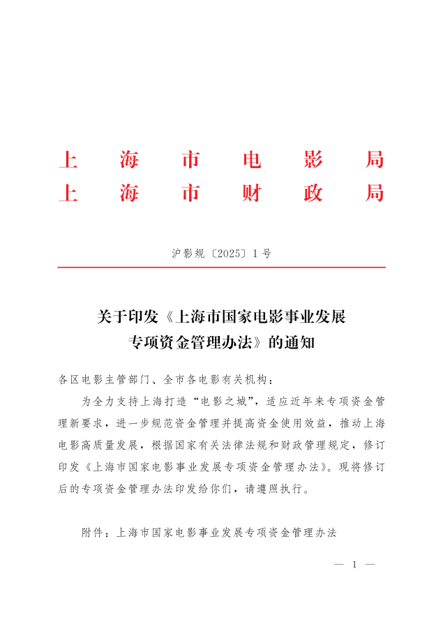 关于印发 《上海市国家电影事业发展专项资金管理办法》的通知